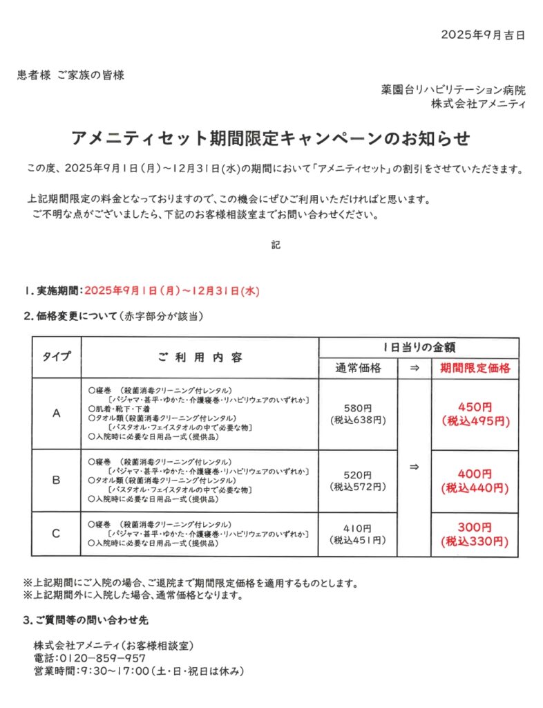 👕アメニティセット(キャンペーン)延長のお知らせ